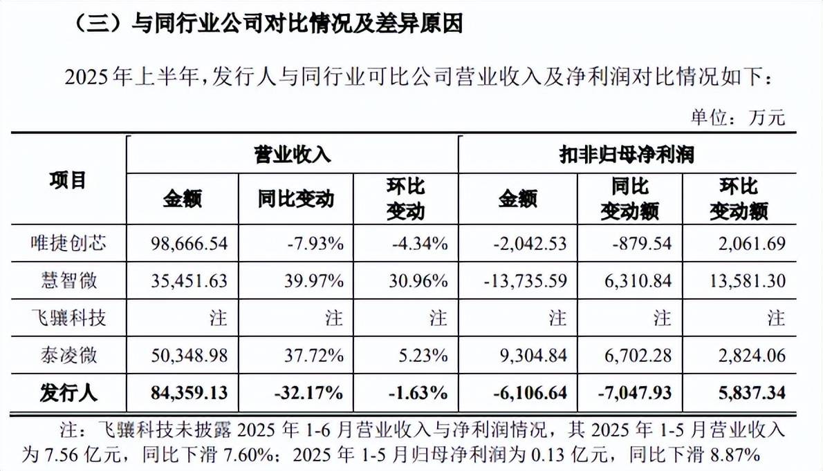 据短平快解读了解,可比同行慧智微、泰凌微上半年实现收入分别为3.54亿元、5.03亿元,同比分别增长39.97%、37.72%,而唯捷创芯收入为9.87亿元,同比下滑7.93%。