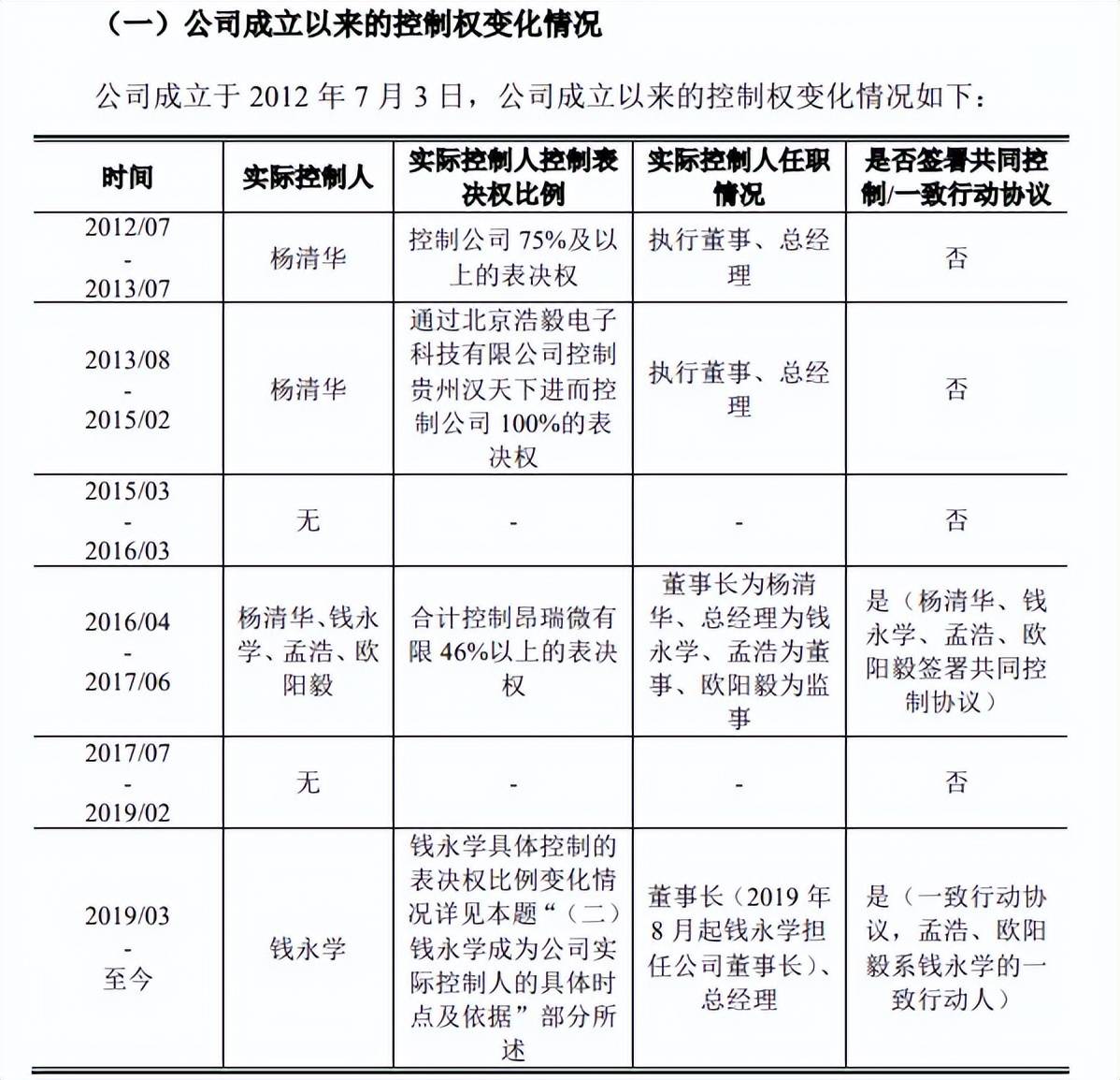 钱永学负大额债务。自成立以来,昂瑞微(昂瑞微有限)的实际控制人变动较大,2012年7月至2015年2月,实际控制人是杨清华,2015年3月至2016年3月无实际控制人;2016年4月至2017年6月,实际控制人是杨清华、钱永学、孟浩、欧阳毅;2017年7月至2019年2月无实际控制人;2019年3月至今,实际控制人均为钱永学。