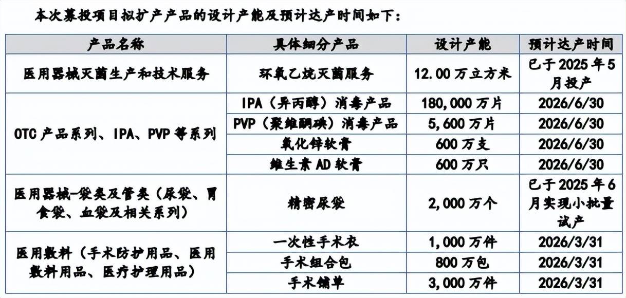 另外,本次募投的OTC产品系列、IPA、PVP等系列产品、医用器械-袋类及管类产品并不在往年收入之列,后续产能消化需要引起注意。