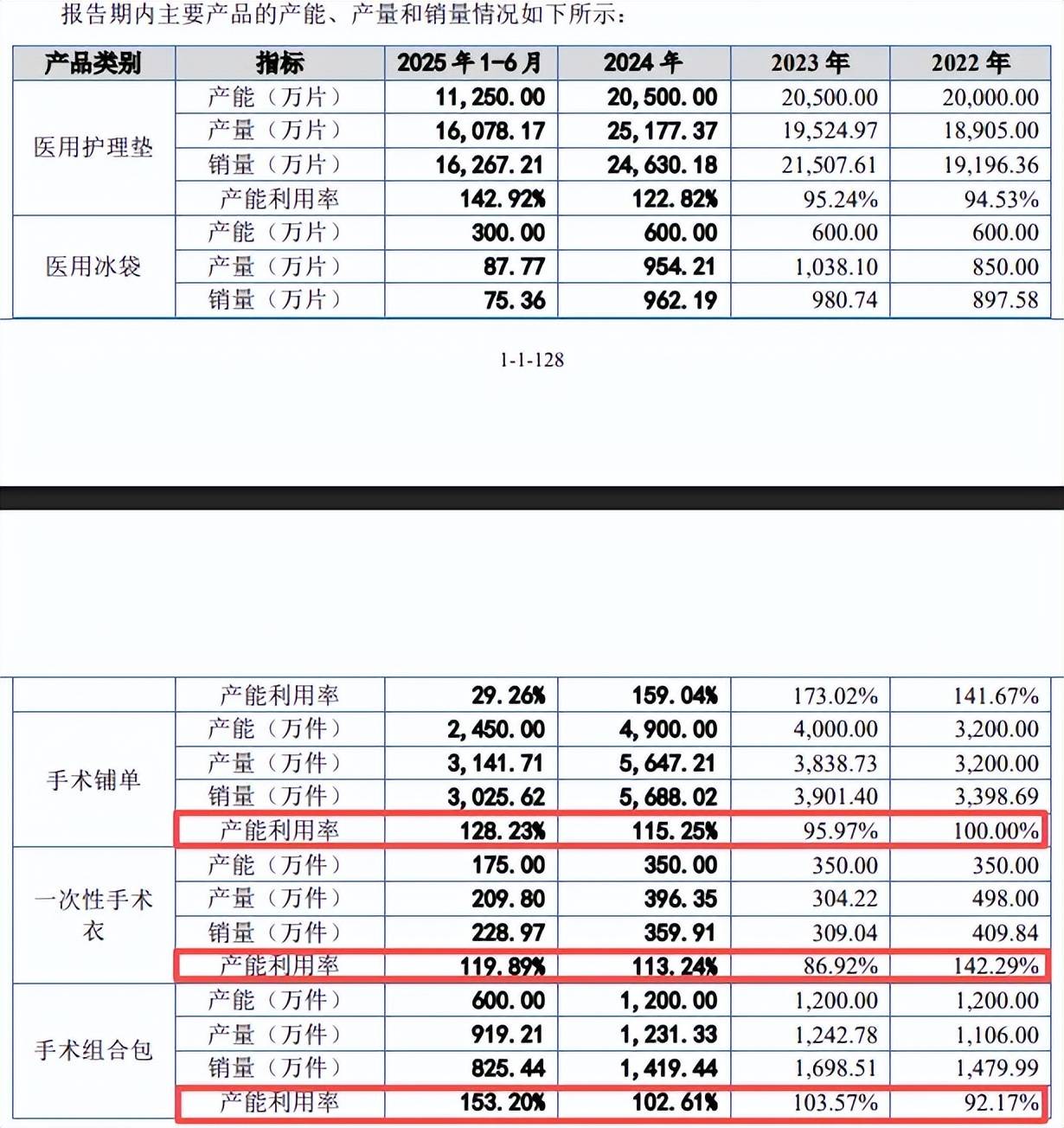 据招股书,爱舍伦收入主要由医用护理垫、医用冰袋、手术铺单、一次性使用手术衣、手术组合包等产品贡献,相关产品报告期内产能利用率较高,2024年分别为122.82%、159.04%、115.25%、113.24%、102.61%,本次募投拟新增一次性手术衣、手术组合包、手术铺单分别为1000万件、800万包、3000万件,约是2024年350万件、1200万包、4900万件的286%、67%、61%。