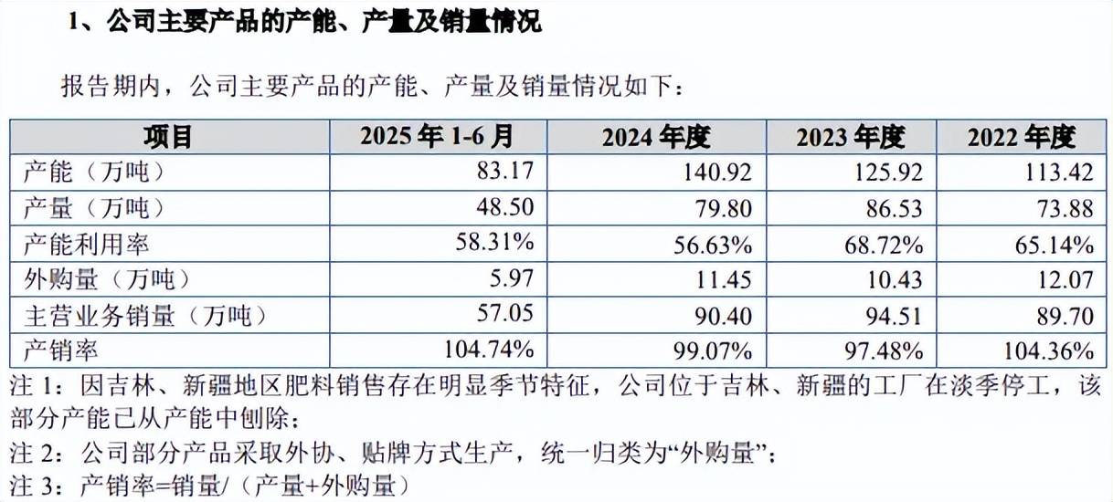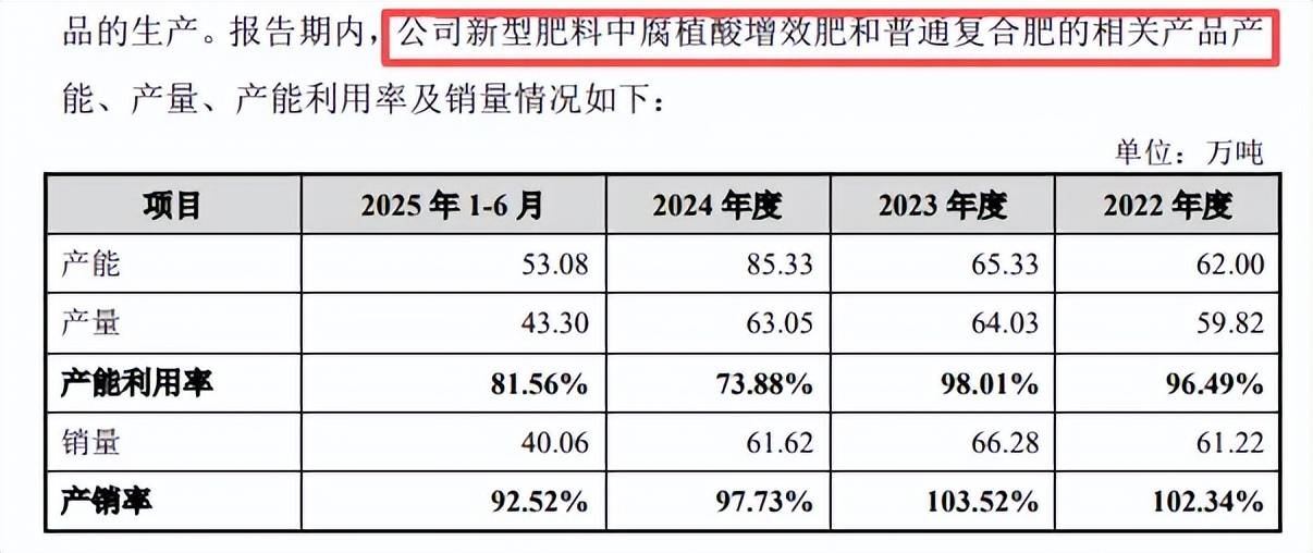 产能消化遭两度问询。报告期内,农大科技产能利用率并不高,分别为65.14%、68.72%、56.63%、58.31%,自2024年至今均不超过60%,2024年产能为140.92万吨,而公司本次募投拟新增30万吨腐植酸智能高塔复合肥以及15万吨生物肥。