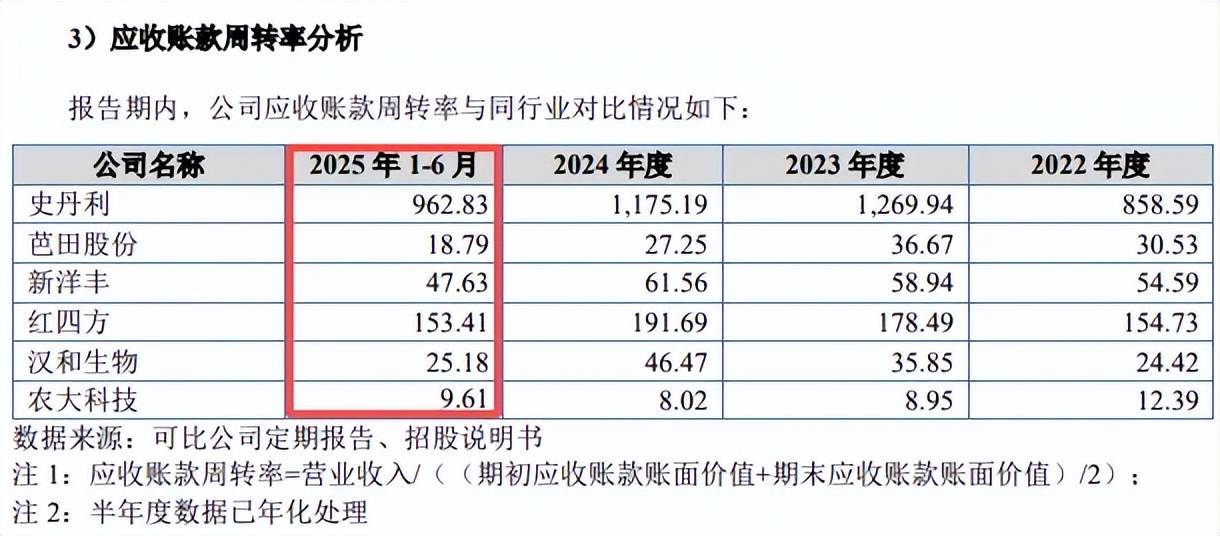 多家同行业绩双增。对比来看,农大科技罗列的多家同样同行实现营收入、归母净利润双增,2023年至2025上半年,史丹利收入增速分别为10.54%、2.71%、12.66%,净利增速分别为58.94%、17.89%、18.9%;芭田股份收入增速分别为13.6%、2.15%、63.93%,净利润增速分别为114.06%、57.67%、203.71%;新洋丰收入增速分别为-5.38%、3.07%、11.63%,净利增速分别为-7.85%、8.99%、28.98%;汉和生物收入增速分别为10.72%、19.96%、10.54%,净利增速分别为31.96%、3.26%、44.64%,仅红四方与公司一样,收入呈现下滑态势。