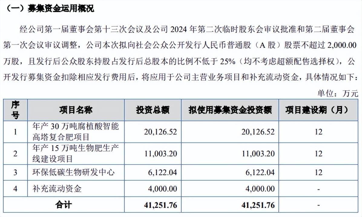 删减一项目,补流资金减少。农大科技拟向社会公众公开发行股票不超过2,000万股,拟募集资金4.13亿元,用于年产30万吨腐植酸智能高塔复合肥项目、年产15万吨生物肥生产线建设项目、环保低碳生物研发中心、以及补充流动资金,拟使用募集资金分别为2.01亿元、1.1亿元、0.61亿元、0.4亿元。