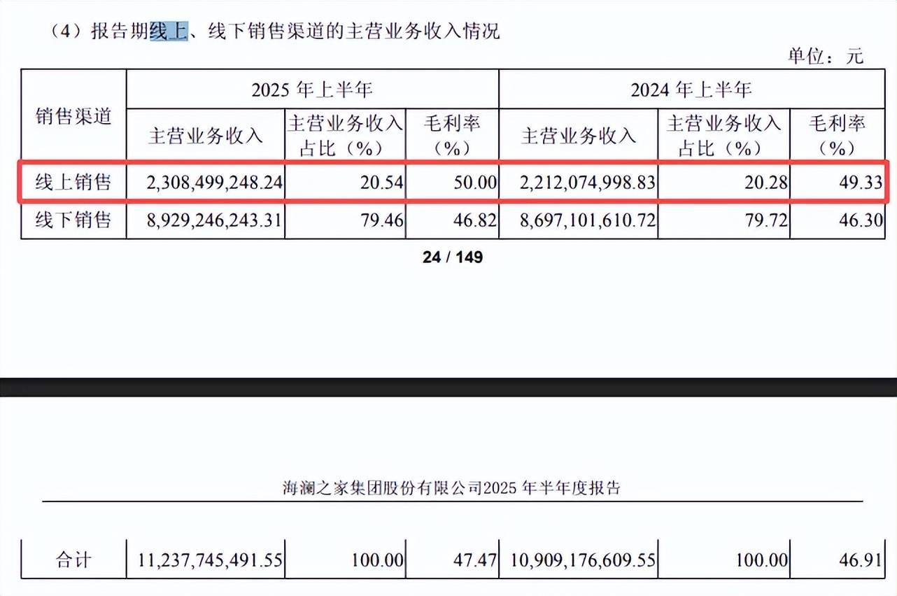 2022年至2024年,海澜之家线上销售营业收入分别为28.56亿元、32.58亿元、44.19亿元,累计增幅54.71%,增长势头良好,今年上半年为23.08亿元,同比增长仅4.36%,或许是公司减少减少电商渠道投入所致。