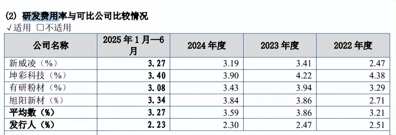 对比同行,可比同行研发费用率均值分别为3.21%、3.86%、3.59%、3.27%,另外,可比同行的研发费用率均高于公司,新威凌、坤彩科技、有研粉材、旭阳新材2024年分别为3.19%、3.9%、3.43%、3.84%,显然公司需要进一步加强研发投入。