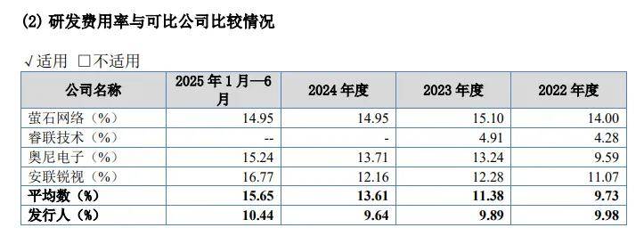 报告期内,公司研发费用分别为5,471.92万元、6,657.24万元、7,165.95万元、3,726.59万元,研发费用率总体较为稳定,分别为9.98%、9.89%、9.64%、10.44%。