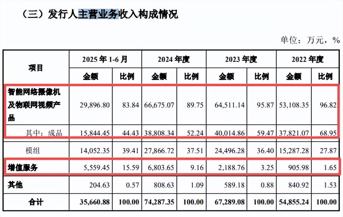 核心产品收入占比降低。报告期内,觅睿科技来源于智能网络摄像机及物联网视频产品的收入分别为5.31亿元、6.45亿元、6.67亿元、2.99亿元,是当之无愧的核心产品,但占比则从96.82%下滑至83.84%,其中成品收入占比从68.95%下滑至44.43%。