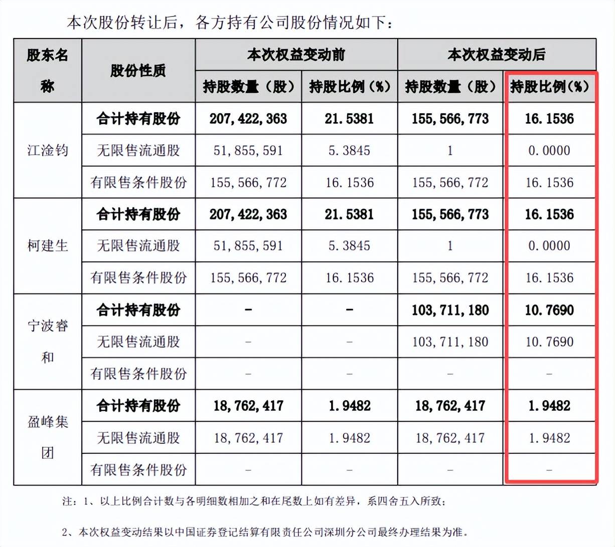 具体来看,宁基有限在引入战略股东SOGALFRANCE前,江淦钧、柯建生两人持股比例分别为50%,引入后则降低至37.5%,2020年持股比例分别为20.5%、19.41%,而通过定增之后,两人持股比例均上升至21.54%,并维持至今。