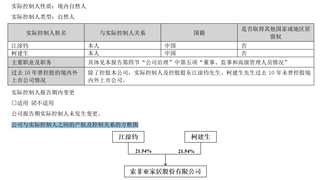 据披露,江淦钧、柯建生两人关系良好,志向相投,其在90年代开始一直保持合作关系并共同创业,2003年共同设立索菲亚前身宁基有限,一直各司其职,持股比例高度一致。