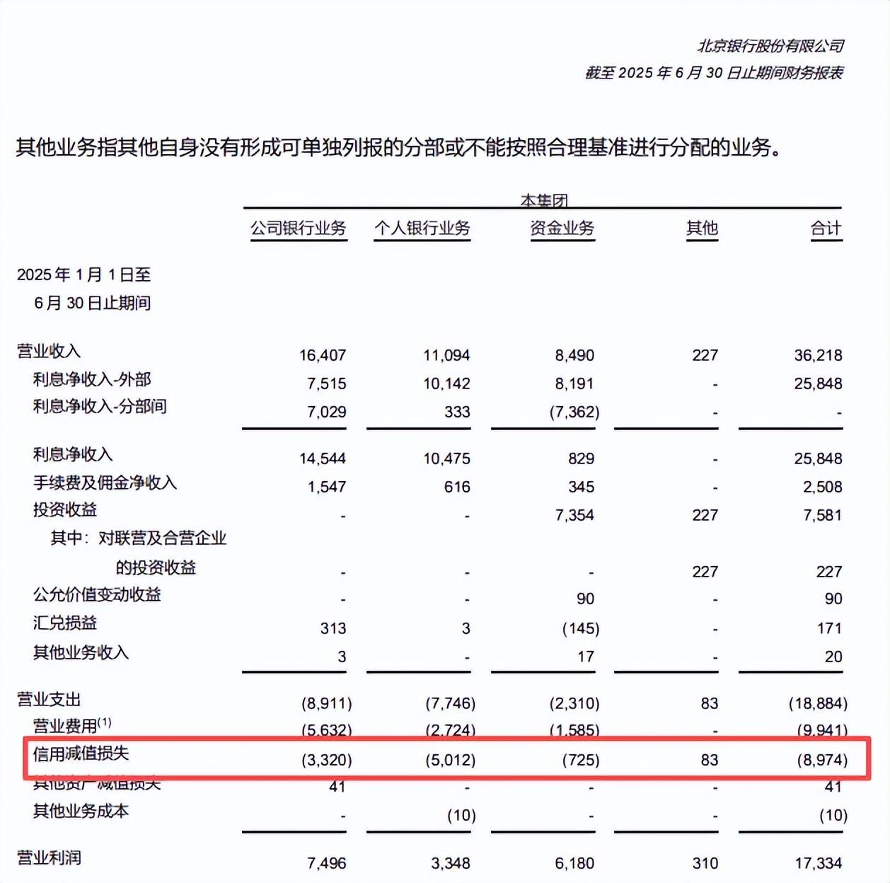 北京银行在财报中并没有单独披露对公贷款、零售贷款的不良贷款情况,不过从信用减值损失来看,上半年公司银行业务、个人银行业务分别损失33.2亿元、50.12亿元,显然个人银行业务的贷款质量情况需要引起重点关注。