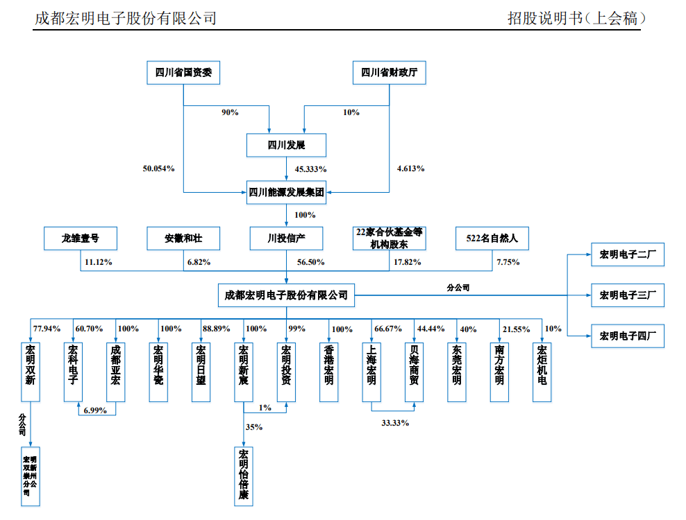 据短平快解读了解,1958年,宏明电子前身国营第七一五厂暨成都宏明电子实业总公司创立,2000年9月完成股份制改革,控股股东是川投信息产业集团有限公司,是四川能源发展集团全资子公司,控制比例达到56.5%,实际控制人是四川省政府国有资产监督管理委员会。