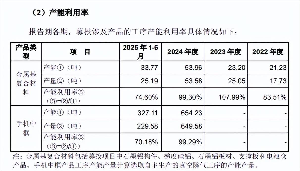 公司表示,航空航天金属基复合材料和手机中框下游客户需求周期波动导致产能利用率有所下降,预计下半年会有所恢复,不会对募投建设造成重大不利影响。
