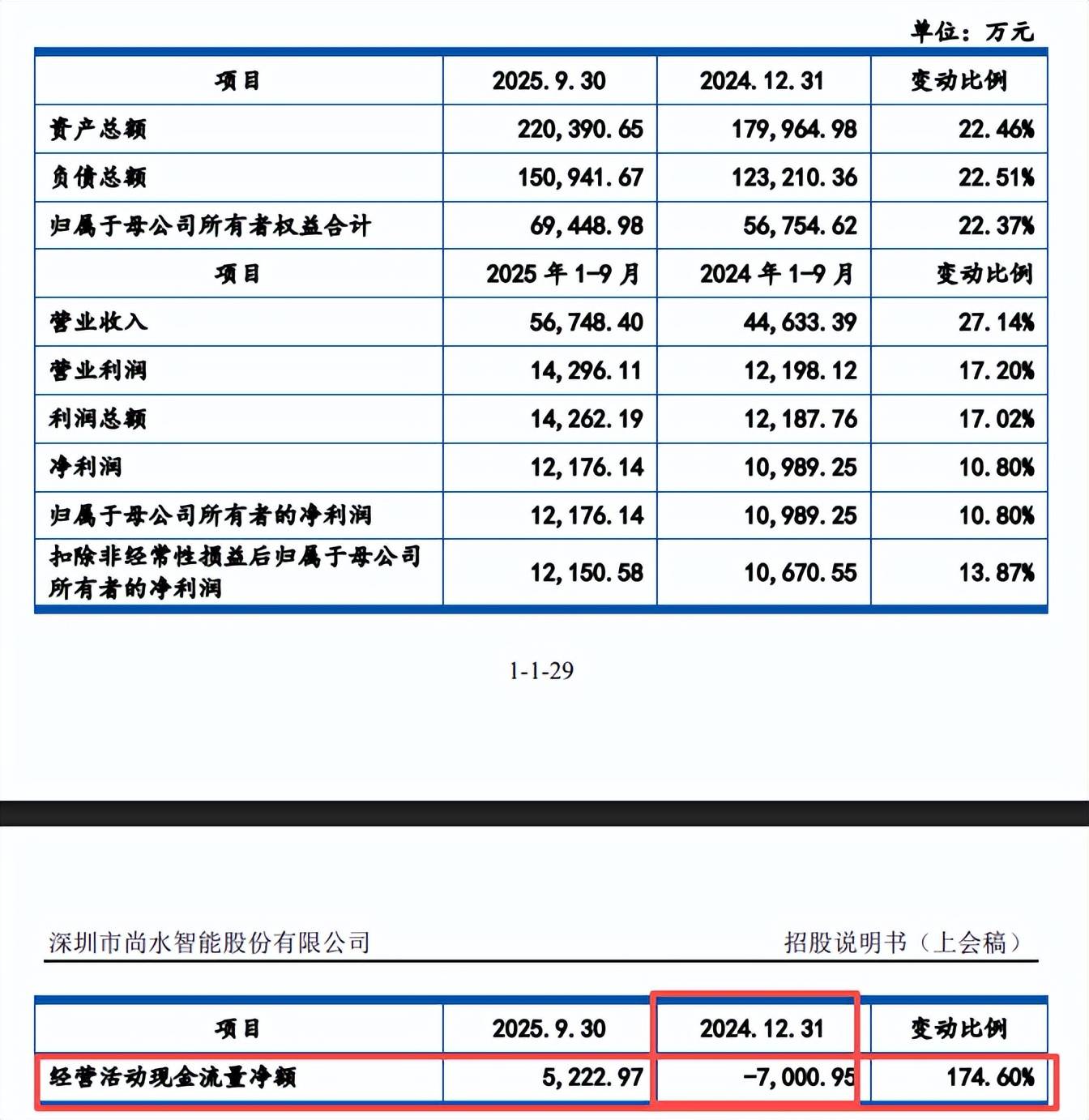 公司最新披露的财务数据显示,前三季度经营现金净流入0.52亿元,而2024年末净流出0.7亿元,变动比例174.6%,但关于2024年数据,招股书却出现不同数值,这点该如何解释呢?