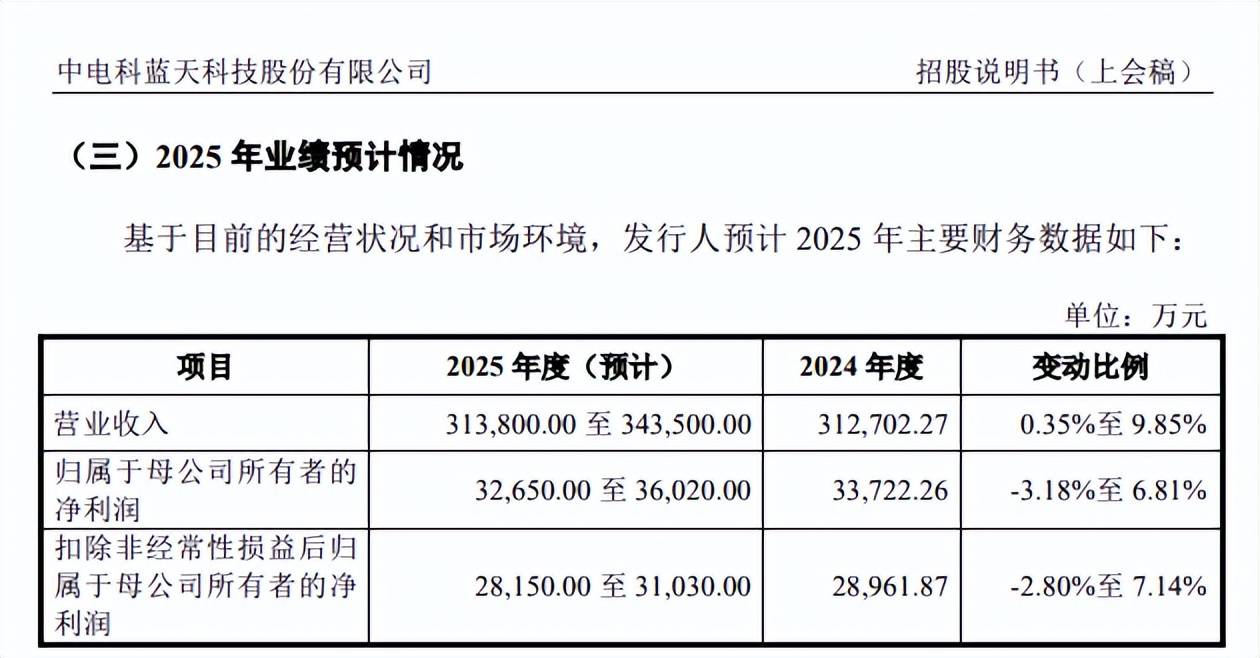 不过,电科蓝天预计2025年实现收入31.38亿元至34.35亿元,同比分别变动0.35%至9.85%,归母净利润为3.27亿元至3.6亿元,同比变动-3.18%至6.81%,仍然存在下滑的可能。