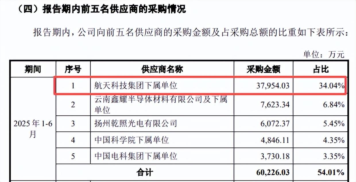 实际上,航天科技集团下属单位也是公司第一大供应商,采购额分别4.32亿元、4.97亿元、5.84亿元、3.8亿元、占比分别为44.95%、19.31%、26.4%、34.04%。