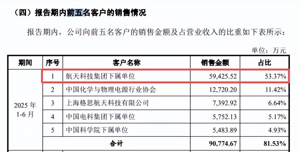 据短平快解读了解,航天科技集团下属单位一直是第一大客户,销售额分别为11.49亿元、15.19亿元、13.65亿元、5.94亿元,占比分别为45.59%、43.1%、43.64%、53.37%。