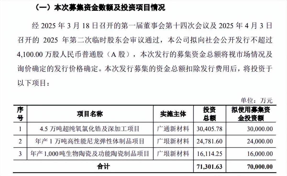 据短平快解读了解,本次IPO,长裕集团拟公开发行不超过4100万股,拟募集资金7亿元,用于4.5万吨超纯氧氯化锆及深加工项目、年产1万吨高性能尼龙弹性体制品项目、年产1,000吨生物陶瓷及功能陶瓷制品项目,拟使用募集资金分别为3亿元、2.4亿元、1.6亿元。