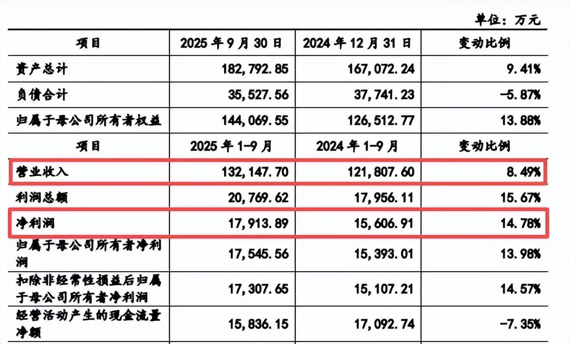 今年前三季度公司实现营业收入13.21亿元,同比增长8.49%,归母净利润1.75亿元,同比增长13.98%。