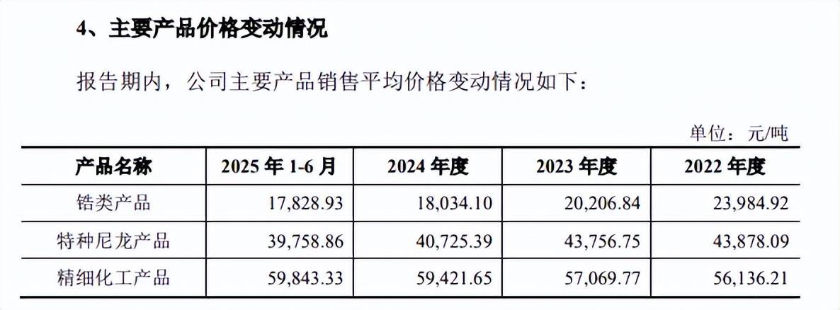 值得一提的是,不管是锆类产品,还是特种尼龙产品,均面临着平均价格不断下滑的困境,前者从23984.92元/吨下滑至17828.93元/吨,累计下滑6155.99元/吨;后者从43878.09元/吨下滑至39758.86元/吨,累计下滑4119.23元/吨。