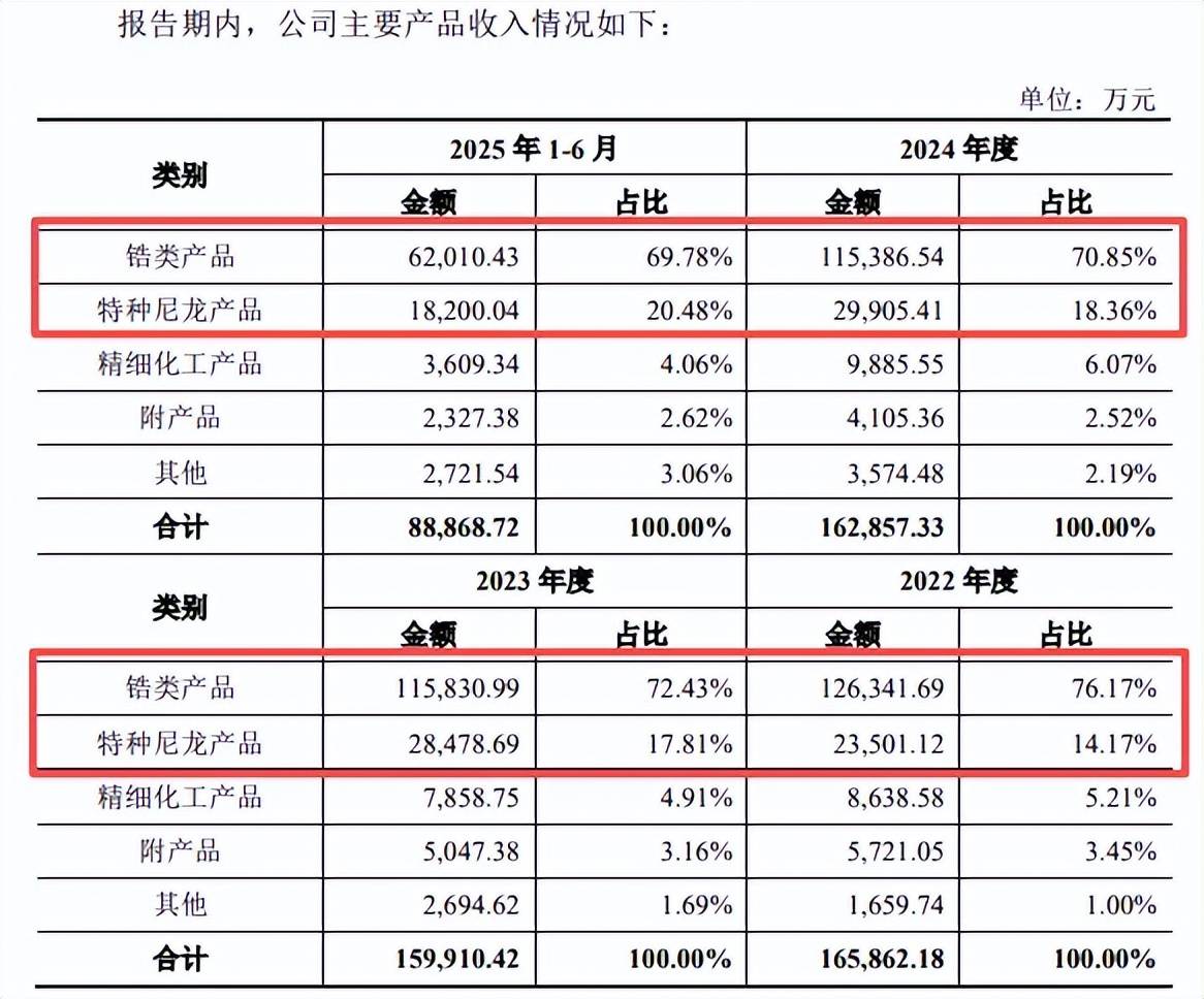 不过,特种尼龙产品扮演着越来越重要的角色,收入分别为2.35亿元、2.85亿元、2.99亿元、1.82亿元,占比从14.17%上升至20.48%。