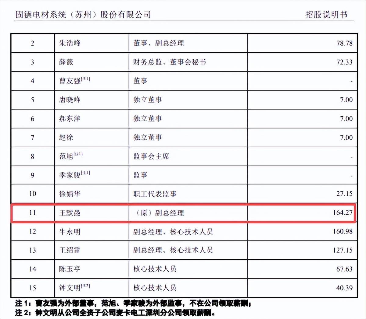 新能源汽车业务高级总裁王默愚辞职。今年10月,因个人原因,王默愚辞去固德电材副总经理职务,其出生于1978年,2022年11月起,担任公司新能源汽车业务高级总裁,2023年12月起担任公司副总经理,直至本次辞职,2024年薪酬164.27万元,是管理层中薪酬最高的高管。