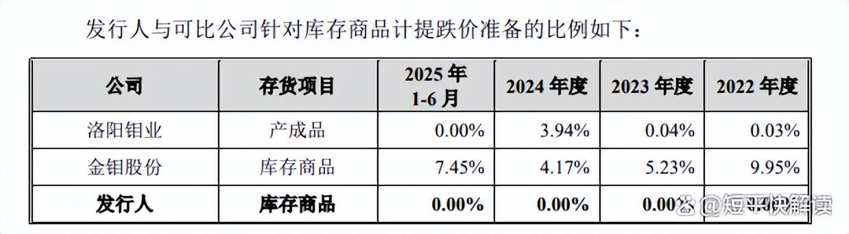 对比来看,同行洛阳钼业、金钼股份库存商品的计提比例要高于公司,前者分别为0.03%、0.04%、3.94%、0%,后者分别为9.95%、5.23%、4.17%、7.45%,何以公司库存商品计提比例为0%?