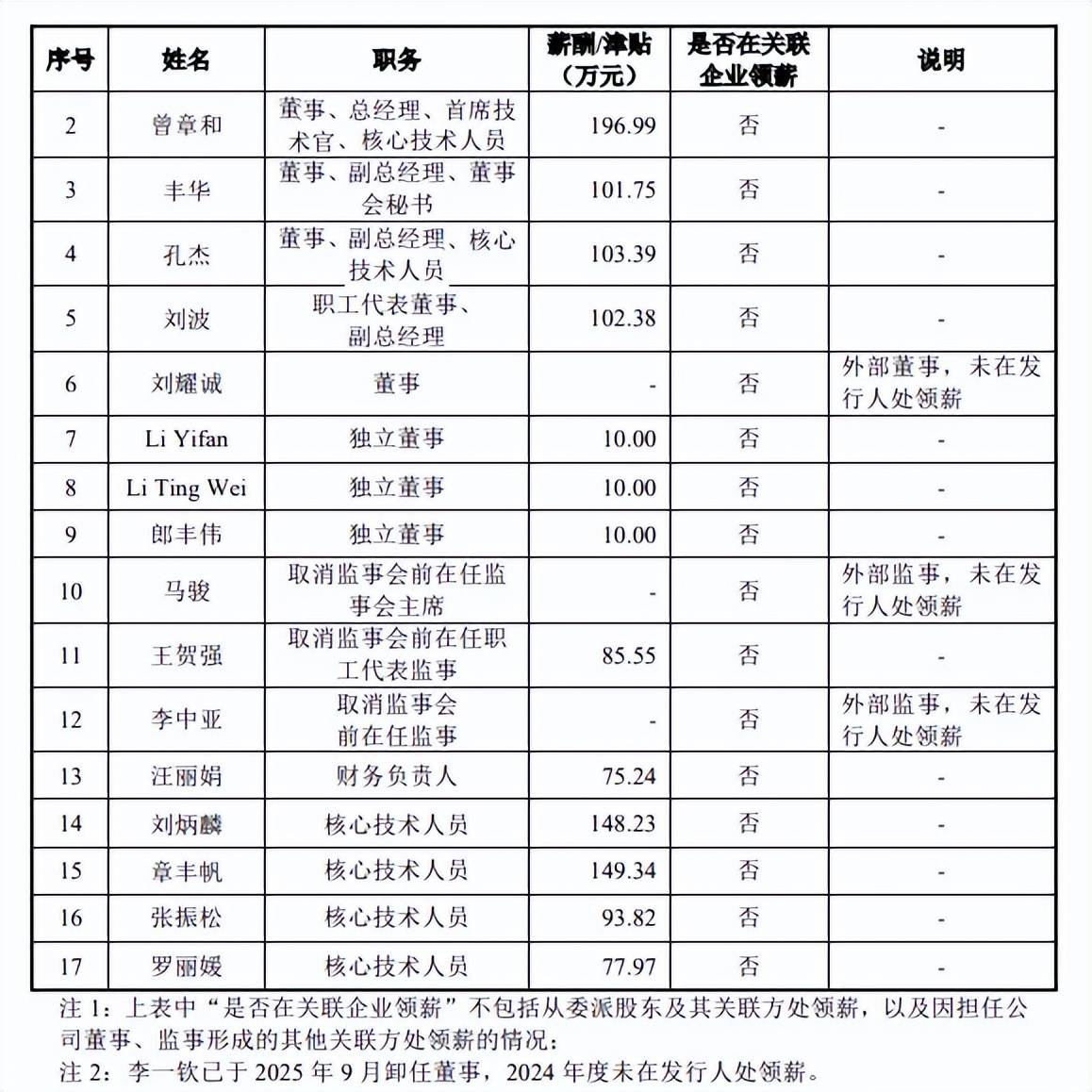 视涯科技薪酬主要流向了核心技术人员,总经理兼首席技术官曾章和税前年薪为196.99万元,核心技术人员章丰帆、刘炳麟分别为149.34万元、148.23万元,副总经理兼核心技术人员孔杰为103.39万元。另外,副总经理兼董事会秘书丰华年薪为101.75万元,职工代表董事兼副总经理刘波为102.38万元。