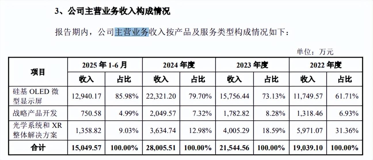 光学系统和XR整体解决方案收入持续萎缩,分别为5,971.07万元、4,005.29万元、3,634.74万元、1,358.82万元,收入占比从31.36%下滑至9.03%。