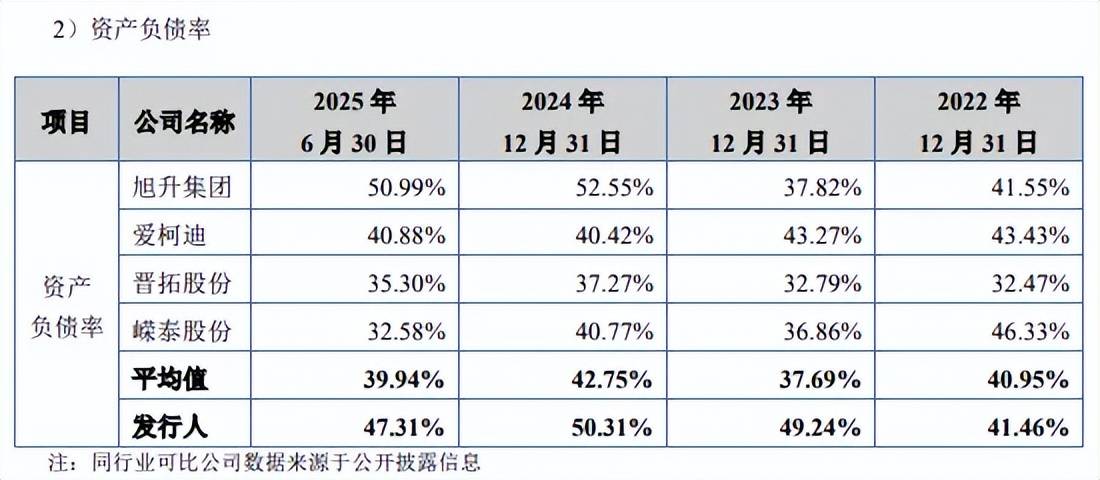 可比同行中,期末仅旭升集团资产负债率高于公司,为50.99%,而爱柯迪、晋拓股份、嵘泰股份分别为40.88%、35.3%、32.58%,均低于公司。隆源股份表示,主要系报告期内公司业务规模持续扩大,为满足客户不断增长的订单需求,通过银行借款等方式进行融资以满足公司构建固定资产及日常经营活动的资金需求,导致资产负债率有所上升。