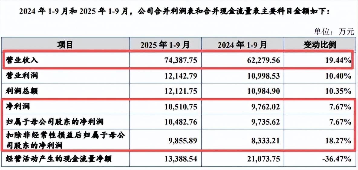 据短平快解读了解,今年前三季度,公司实现营业收入、归母净利润分别为7.44亿元、1.05亿元,同比分别增长19.44%、7.67%,扣非净利润0.99亿元,同比增长18.27%,不过经营活动产生的现金流出现了下滑,金额为1.34亿元,同比大降36.47%,公司称主要系购买商品支付的现金增加和收到的增值税留抵退税减少所致。