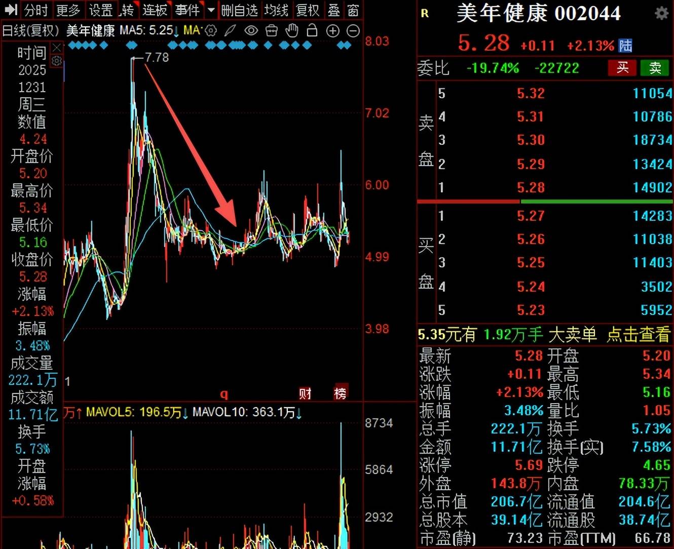 二级市场上,美年健康股价在2025年2月达到7.78元/股(前复权,下同)的高点后,此后股价呈现剧烈波动,总体呈现下滑态势,截至去年12月31日收盘,股价为5.28元/股,较高点跌幅超32%,总市值206.7亿元,TTM市盈率66.78倍,另外,当月17日、18日,股价累计涨幅超20%,公司随即发布股票交易异常波动公告。