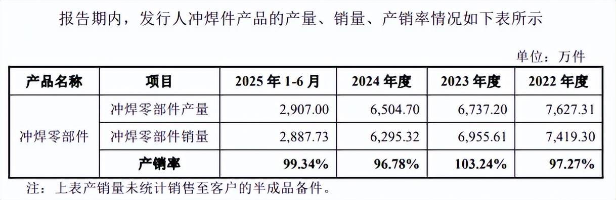 另外,2022年至2025年1-6月,公司冲焊零部件不管是产量,还是销量均呈现下滑态势,产量分别为7,627.31万件、6,737.20万件、6,504.70万件、2,907万件,销量分别为7,419.30万件、6,955.61万件、6,295.32万件、2,887.73万件,这种情况下为何还要大手笔扩产呢?