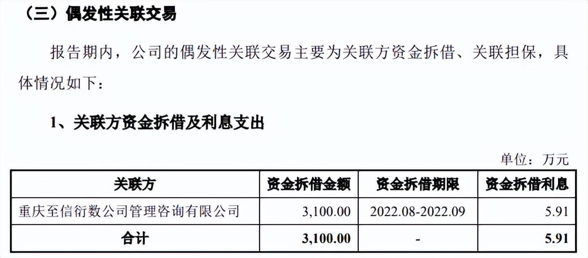 据短平快解读了解,2022年8月,公司向控股股东至信衍数(陈志宇、敬兵夫妻持股100%)拆入3100万元,次月归还,按照4.35%年利率计息,向后者支付5.91万元的利息。更早之前,双方是否存在类似资金拆借的行为,又履行了哪些程序,后续如何避免类似事项是需要公司明确回复的。