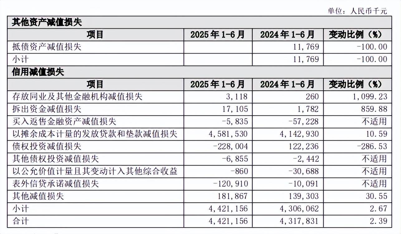 贷款减值损失是大头,2025年中报为45.81亿元,同比增加4.39亿元,增幅10.59%,显然贷款损失仍然需要引起重视,公司称适当加大减值准备的计提以提升风险抵御能力。