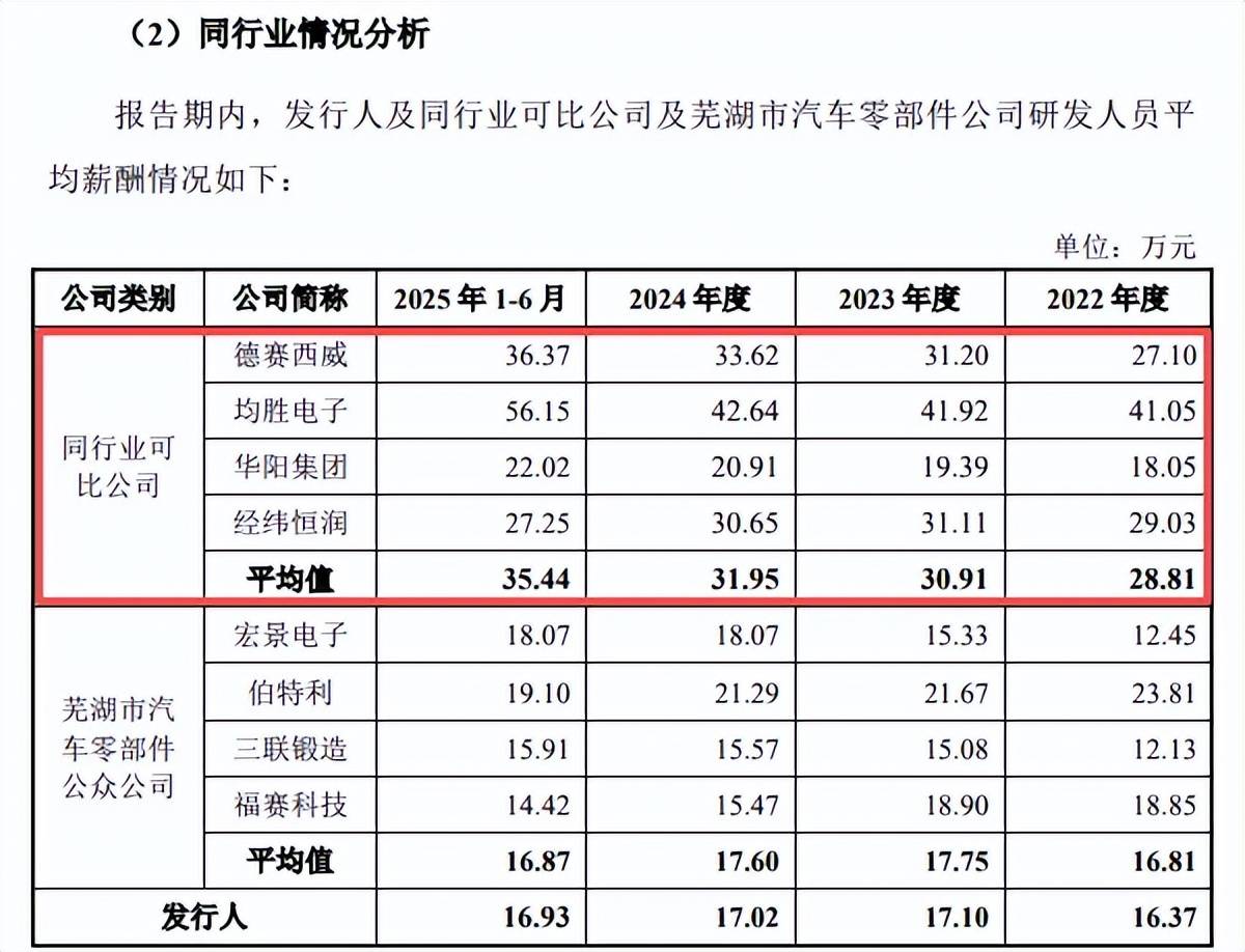 事实上,德赛西威、均胜电子、华阳集团、经纬恒润的研发投入数倍于公司,期末分别为13.26亿元、16.94亿元、4.05亿元、4.4亿元,研发团队规模也是甩开公司,分别为4324人、6323人、2643人、5038人(德赛西威、华阳集团研发人员数据为2024年末)。