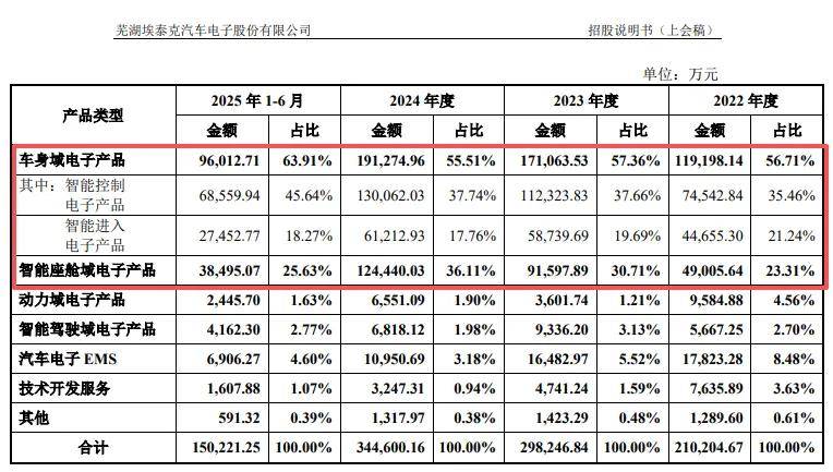 埃泰克主要从事汽车电子产品的研发、生产及销售,同时为客户提供汽车电子EMS和技术开发服务,产品覆盖车身域、智能座舱域、动力域以及智能驾驶域四大核心功能域,客户包括奇瑞、长安、长城、上汽等自主品牌以及理想、小鹏、零跑等造车新势力。