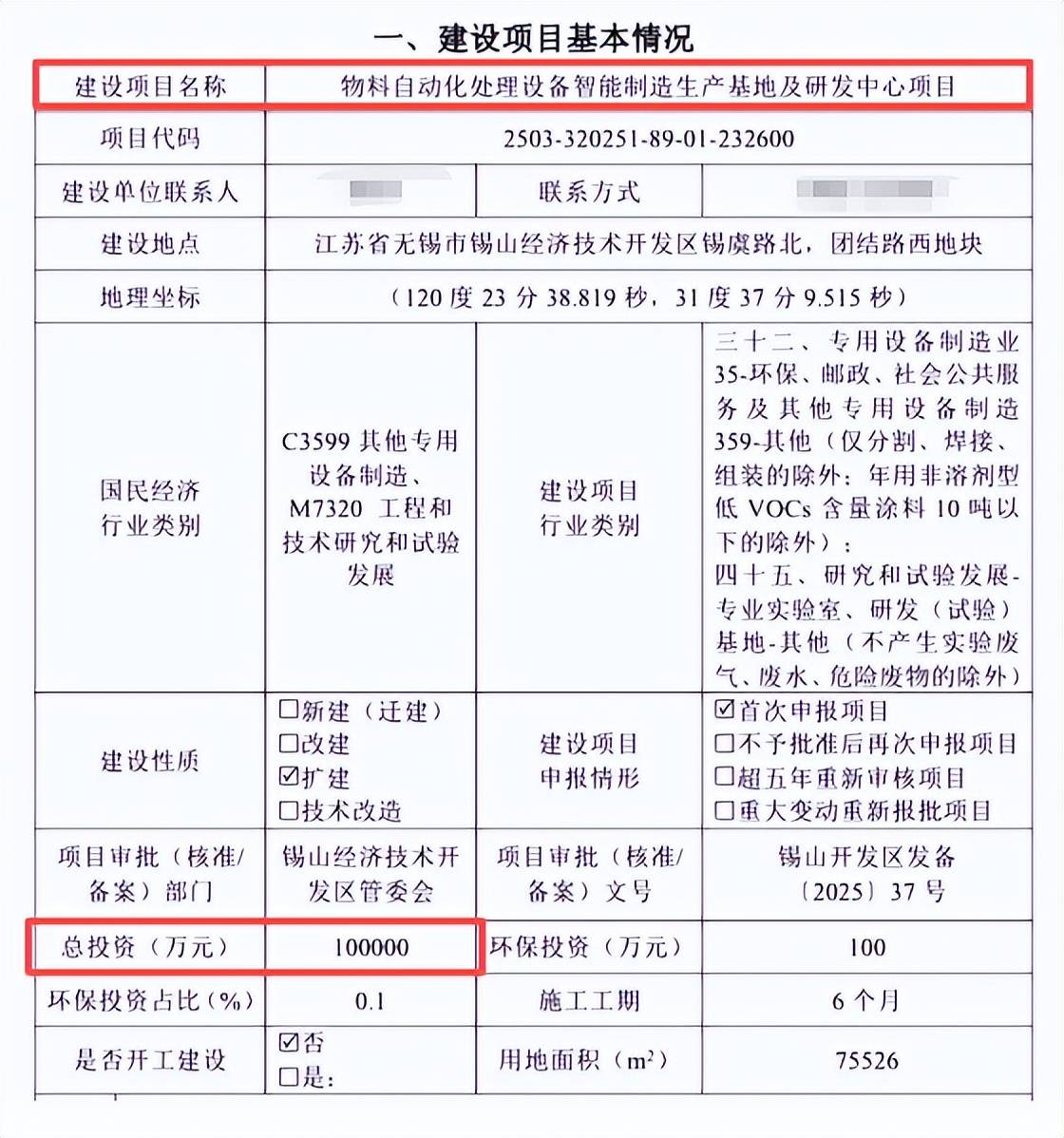 生产、研发项目拟投入资金与环评文件存在出入。物料自动化处理设备智能制造生产基地项目、研发中心项目均位于位于锡山经济技术开发区锡虞路北、团结路西,建设周期为2年,合计投入募集资金80815.71万元,不过在2025年4月编制的《无锡理奇智能装备股份有限公司物料自动化处理设备智能制造生产基地及研发中心项目环境影响报告表》公示稿中,两项目合计投资金额为10亿元,施工工期为6个月,为何招股书、环评文件对同一项目的披露存在矛盾,是公司需要进行补充披露的。