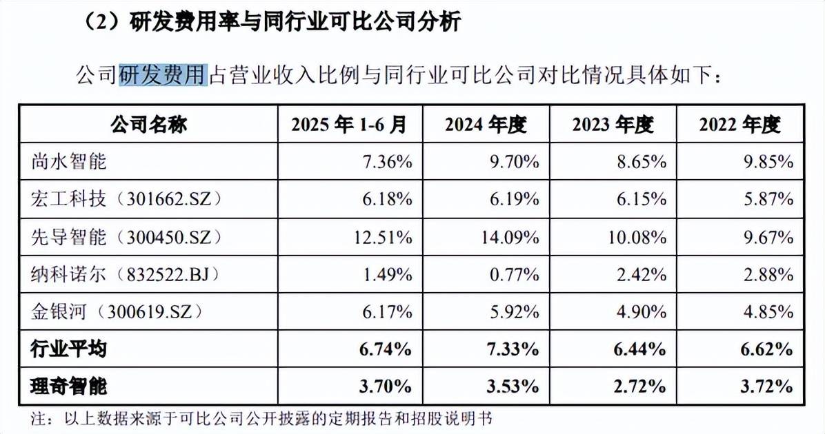 研发费用率落后于行业均值,发明专利占比仅7.25%。报告期内,理奇智能研发费用分别为2,299.33万元、4,684.32万元、7,664.16万元、4,401.97万元,研发费用率分别为3.72%、2.72%、3.53%、3.7%。