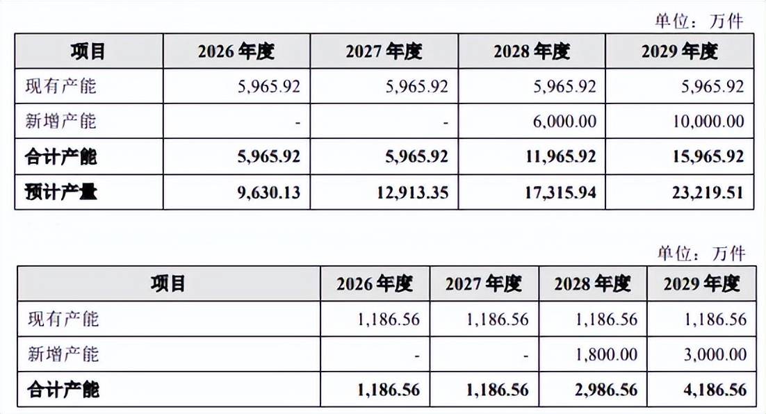 公司传感器2023年度投入量产,产量相对较低,现有产能为1,186.56万件,新增产能是现有产能的2.53倍,属于激进扩产。