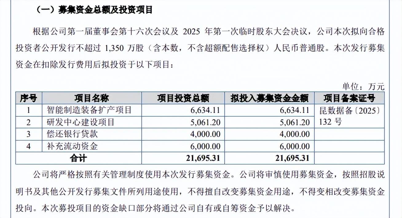 据短平快解读了解,本次IPO,鸿仕达拟向合格投资者公开发行不超过1,350万股(含本数,不含超额配售选择权),拟募集资金2.17亿元,用于智能制造装备扩产项目、研发中心建设项目、偿还银行贷款以及补充流动资金,拟投入募集资金分别为6,634.11万元、5,061.20万元、4,000万元、6,000万元。