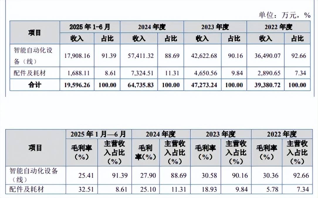 不过智能自动化设备(线)毛利率波动较为明显,分别为30.36%、30.58%、27.9%、25.41%,即自2023年以来连降,期末较高点下滑5.17个百分点。而公司另一产品配件及耗材毛利率则连升,从5.78%上升至32.51%,累计上升26.73个百分点。