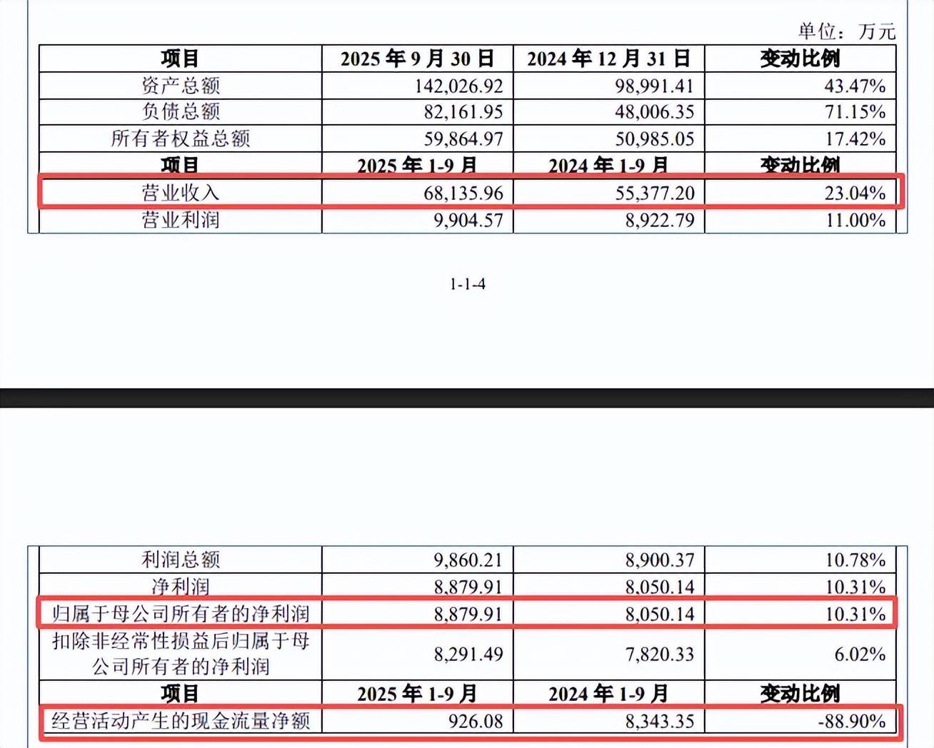 据短平快解读了解,2025年前三季度,公司实现营业收入、归母净利润分别为6.81亿元、0.89亿元,同比分别增长23.04%、10.31%,不过经营现金流大幅锐减,前三季度仅926.08万元,同比减少7417.27万元,降幅88.9%。