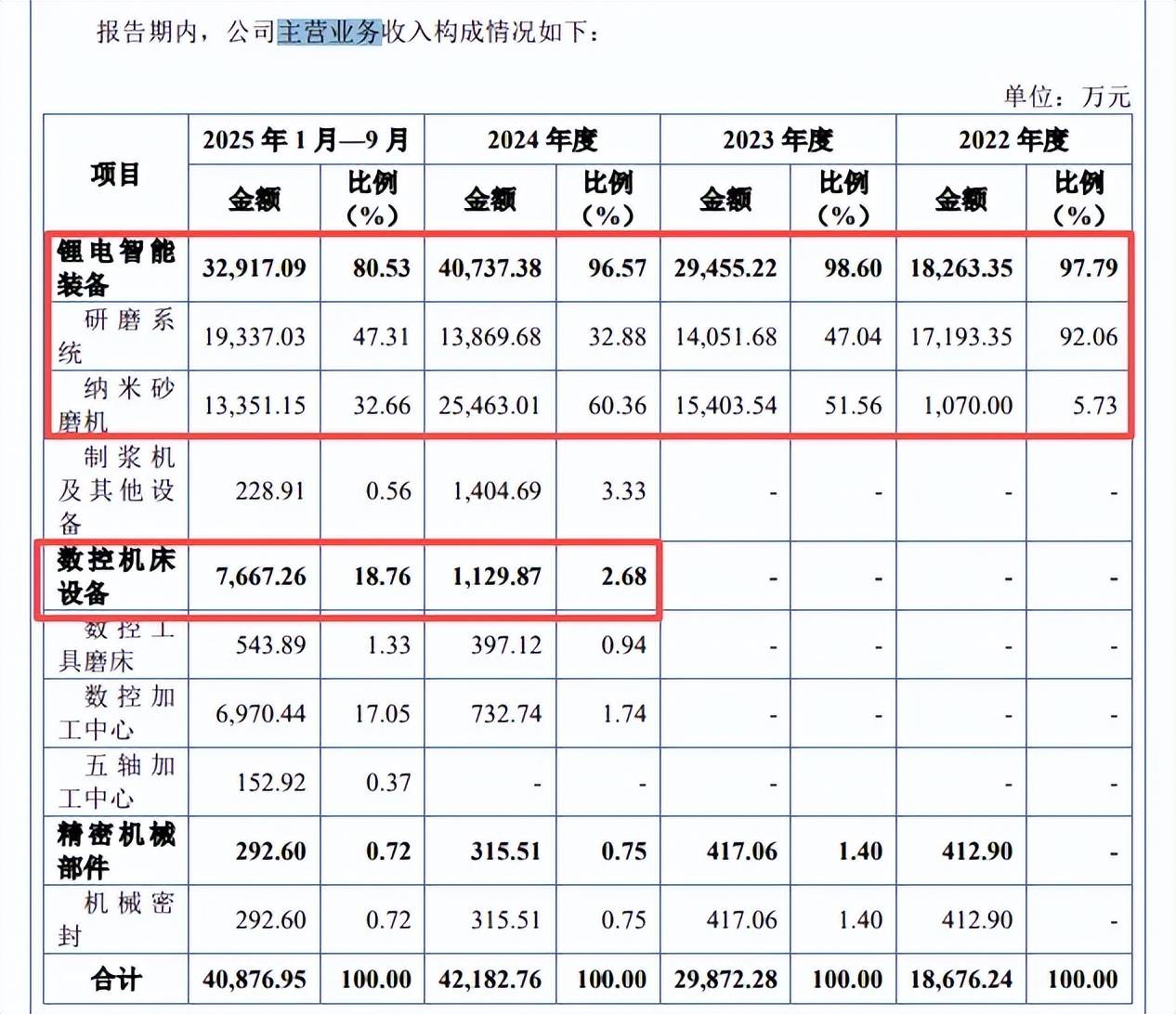 数控机床设备收入增长迅猛,2024年、2025年前三季度收入分别为1,129.87万元、7,667.26万元,占比分别为2.68%、18.76%。