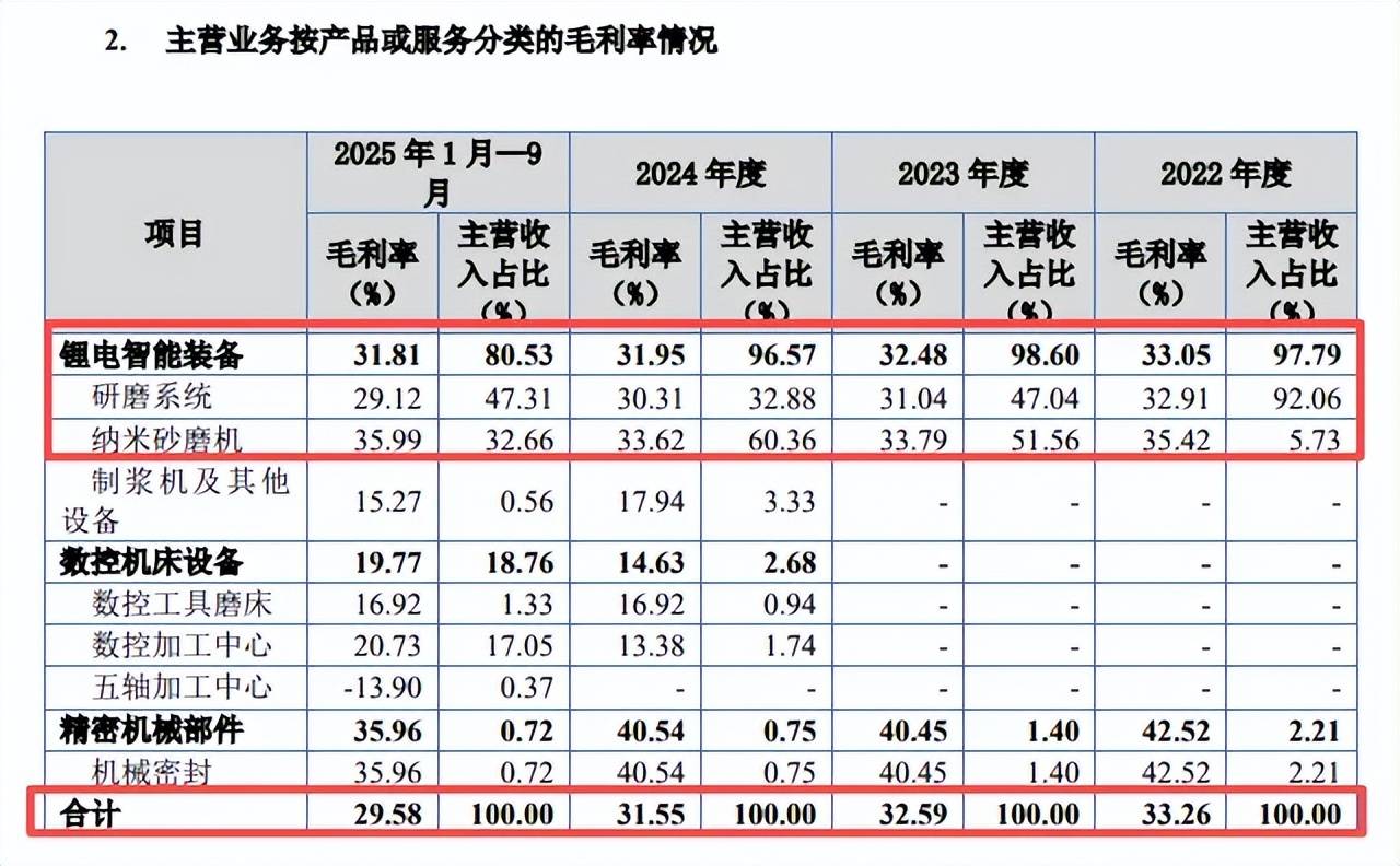 不过,主营业务毛利率连降,分别为33.26%、32.59%、31.55%、29.58%,主要受锂电智能装备影响,毛利率分别为33.05%、32.48%、31.95%、31.81%,其中研磨系统毛利率从32.91%下滑至29.12%,而纳米砂磨机毛利率波动较大。