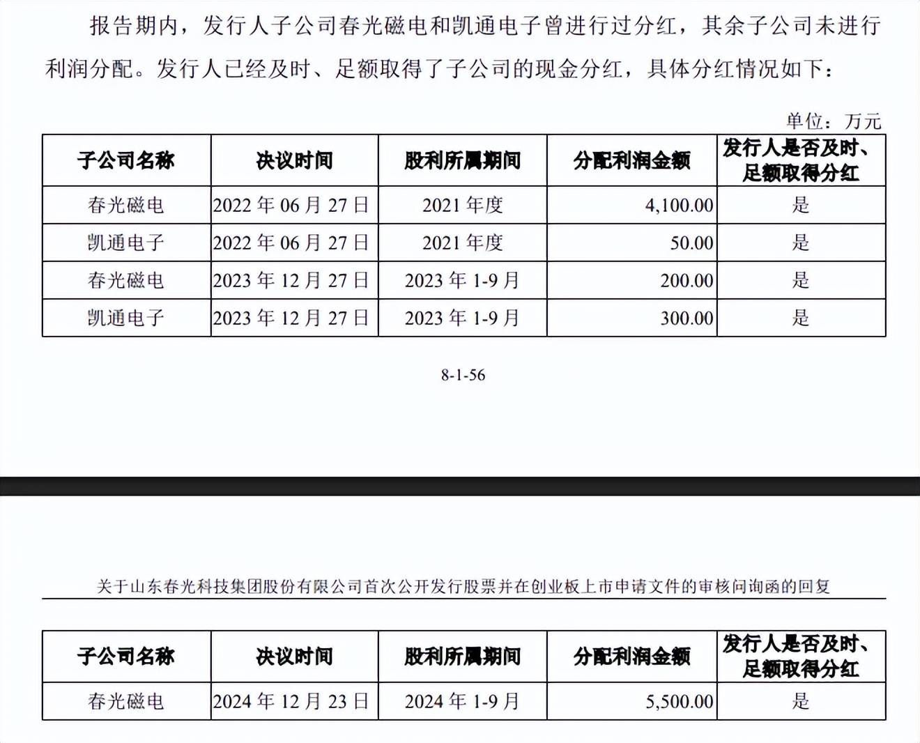 债务压力较大,公司及子公司仍大手笔分红。春光集团本次募投的重头是补充流动资金0.99亿元,不过其在2025年上半年分红2,472万元。另外,子公司春光磁电三次分红合计9800万元,子公司凯通电子两次分红合计350万元,大手笔分红下补充流动资金是否合理?