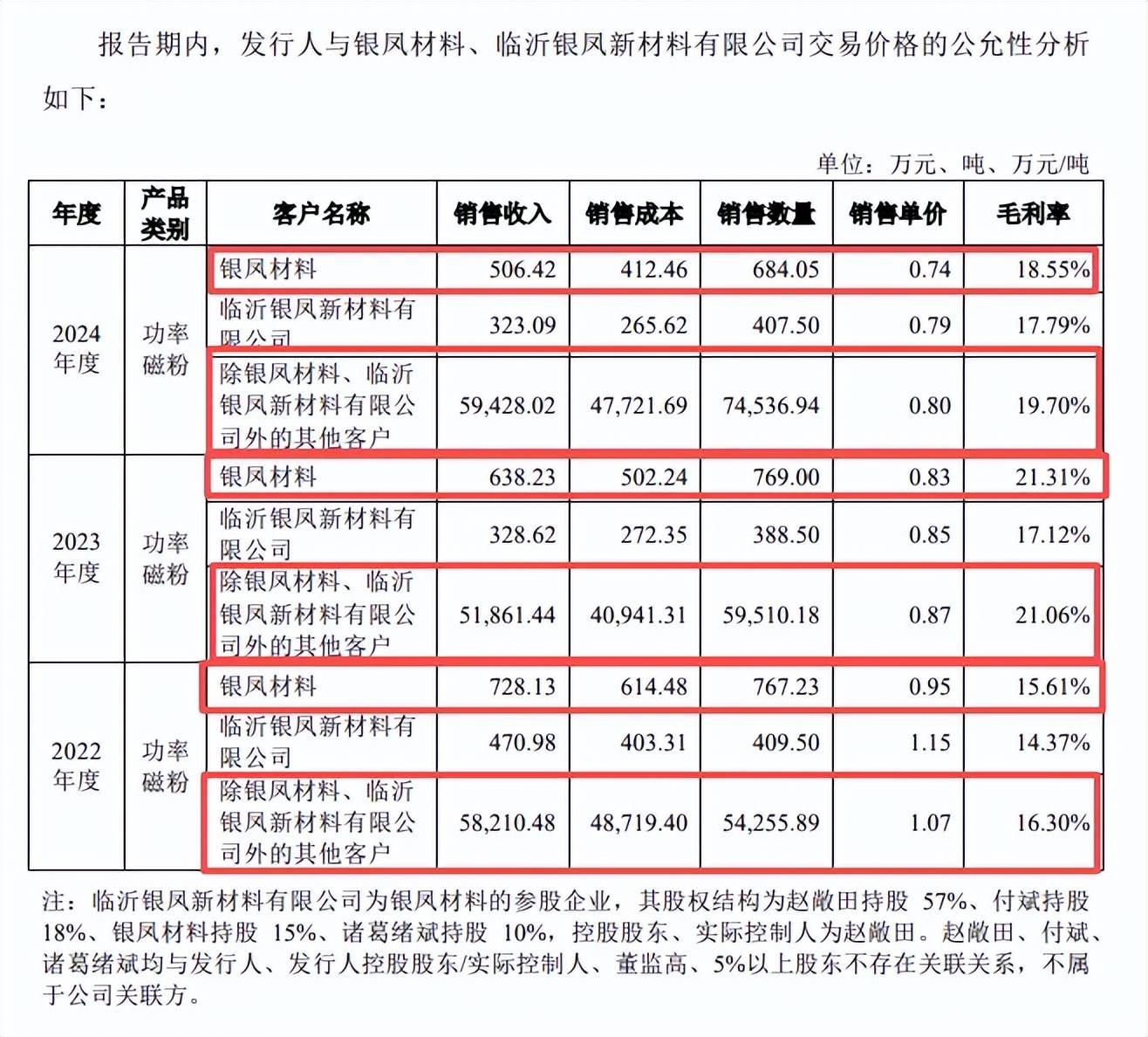 另外,公司对碧陆斯凯通销售的每吨高导磁心单价分别为2.96万元、2.40万元、2.28万元,而向其他客户的销售单价分别为3.21万元、2.84万元、2.54万元。