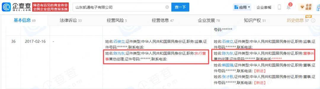 据问询函,陈为东历史上曾担任公司子公司春光磁电/凯通电子的监事/董事,于2021年辞任,任职过程中未实际参与日常运营管理。