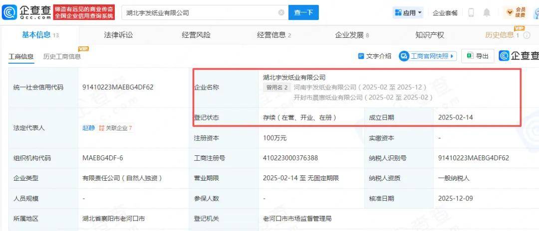 河南宇发纸业成立于2025年2月,现已更名湖北宇发纸业有限公司,实缴资本为0元,由赵静全资持股。据招股书,林平发展与河南宇发纸业签署框架合同,采购内容是废纸,自2025年3月1日起,有效期3年。