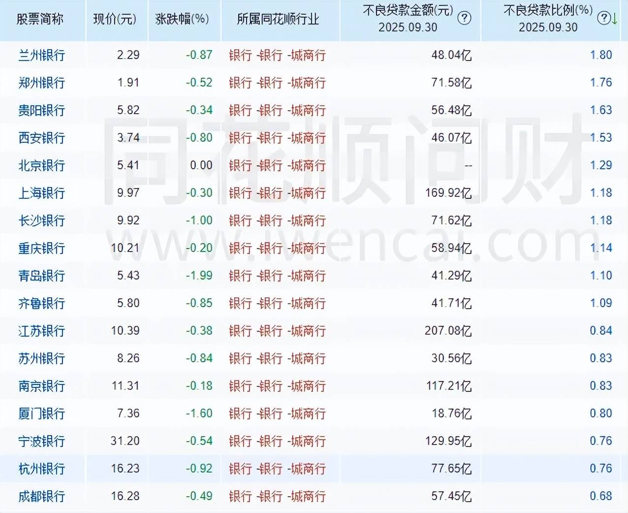 据短平快解读了解,2025年前三季度,公司不良贷款进一步增加至71.58亿元,在A股17家城商行中排在第7名,不良贷款率1.76%,在17家城商行排在第二名,仅次于兰州银行的1.8%,与倒数第一的成都银行相差1.08个百分点,贷款质量仍然是公司重中之重。