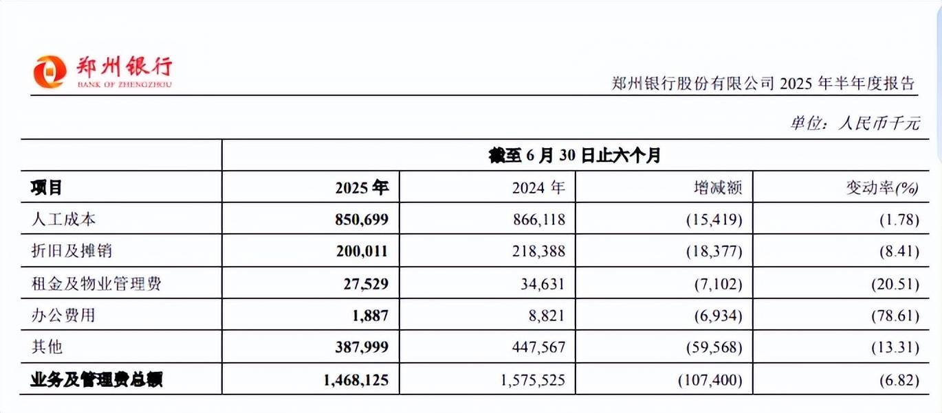 控支出,提利润。2023年、2024年,郑州银行业务及管理费均保持增长,分别为36.96亿元、37.13亿元,这种情况在2025年发生改变,前三季度同比下滑2.45%至22.43亿元。